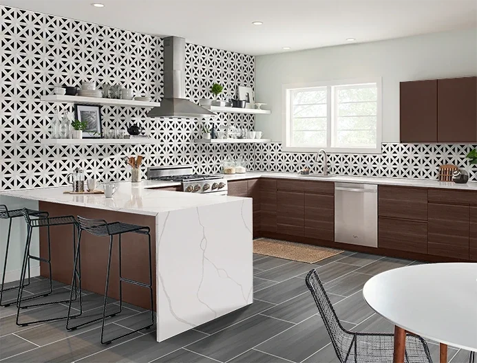Matching Quartz: Using the same quartz product for both your countertops and backsplash produces a seamless, sleek look that emphasizes luxury and continuity.