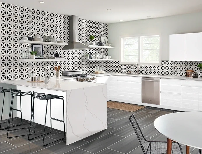Your backsplash can match or coordinate with the quartz, influencing the overall appearance of the space. Here are some great backsplash options for Calacatta quartz.