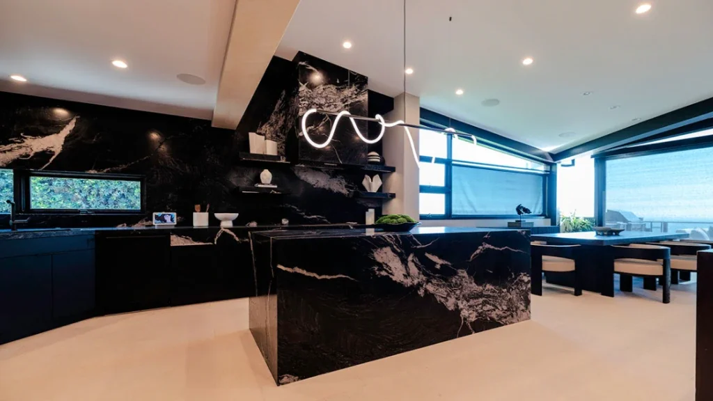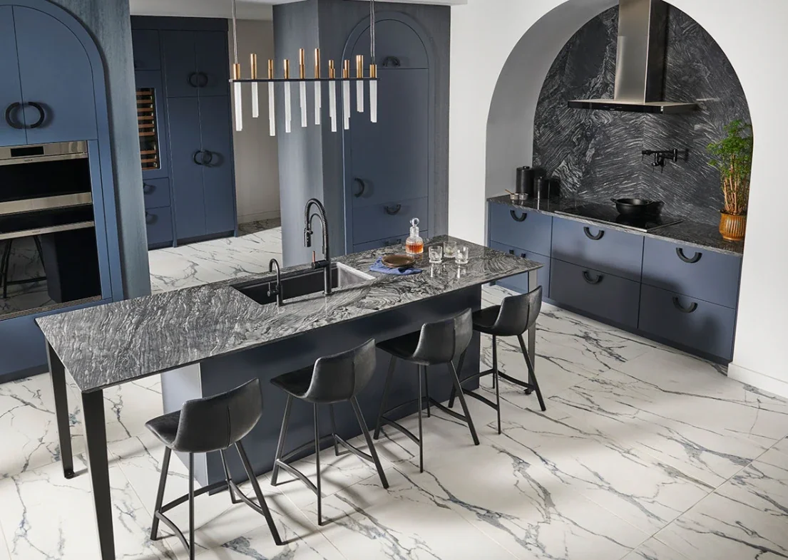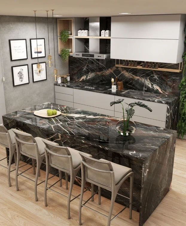 Bold & Dramatic: Deep-toned quartzite with striking patterns makes a strong visual statement.