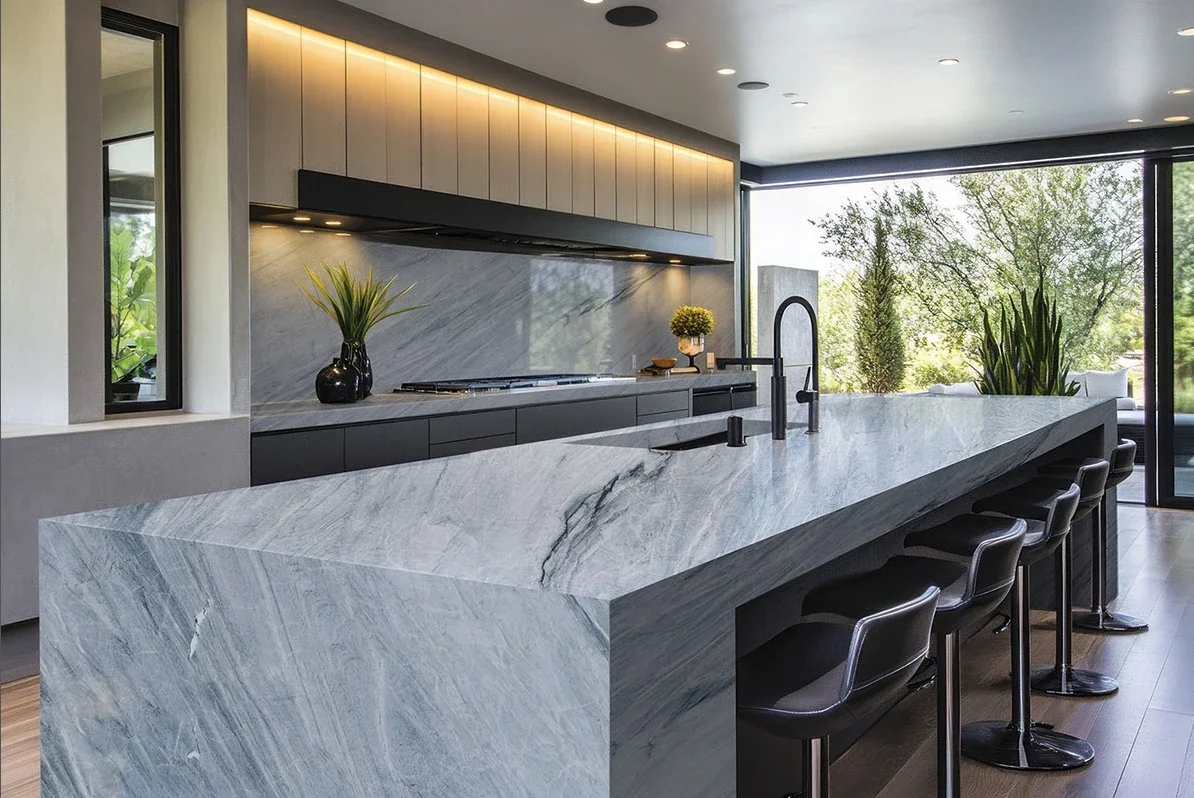 Luxury Statement: Bookmatched slabs deliver a seamless, high-end look that exudes sophistication.